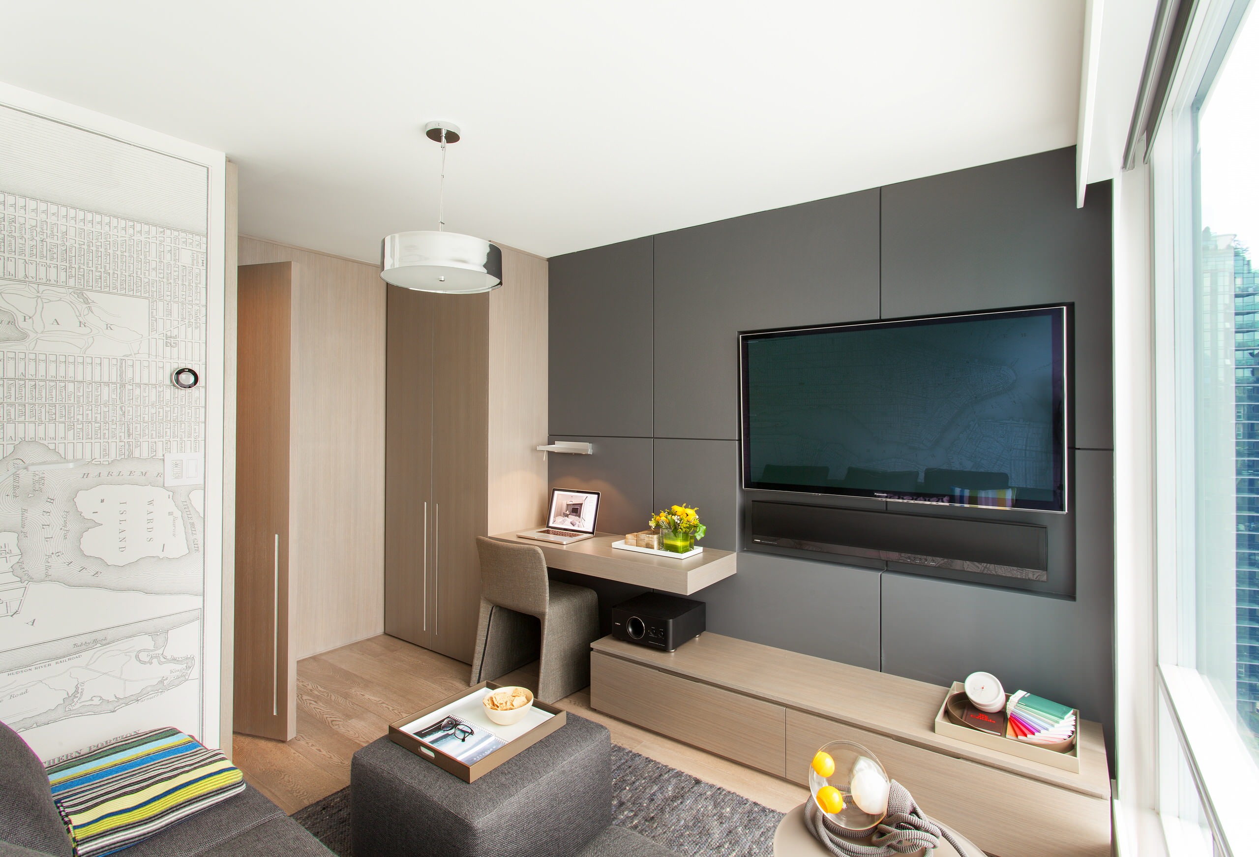 When living small, it’s imperative you ask yourself: Could this serve more than one purpose? By having key pieces do double duty, you can easily accommodate all your living room needs. Perfect examples are a console table or wall unit as a desk and the highly useful pullout sofa-bed.