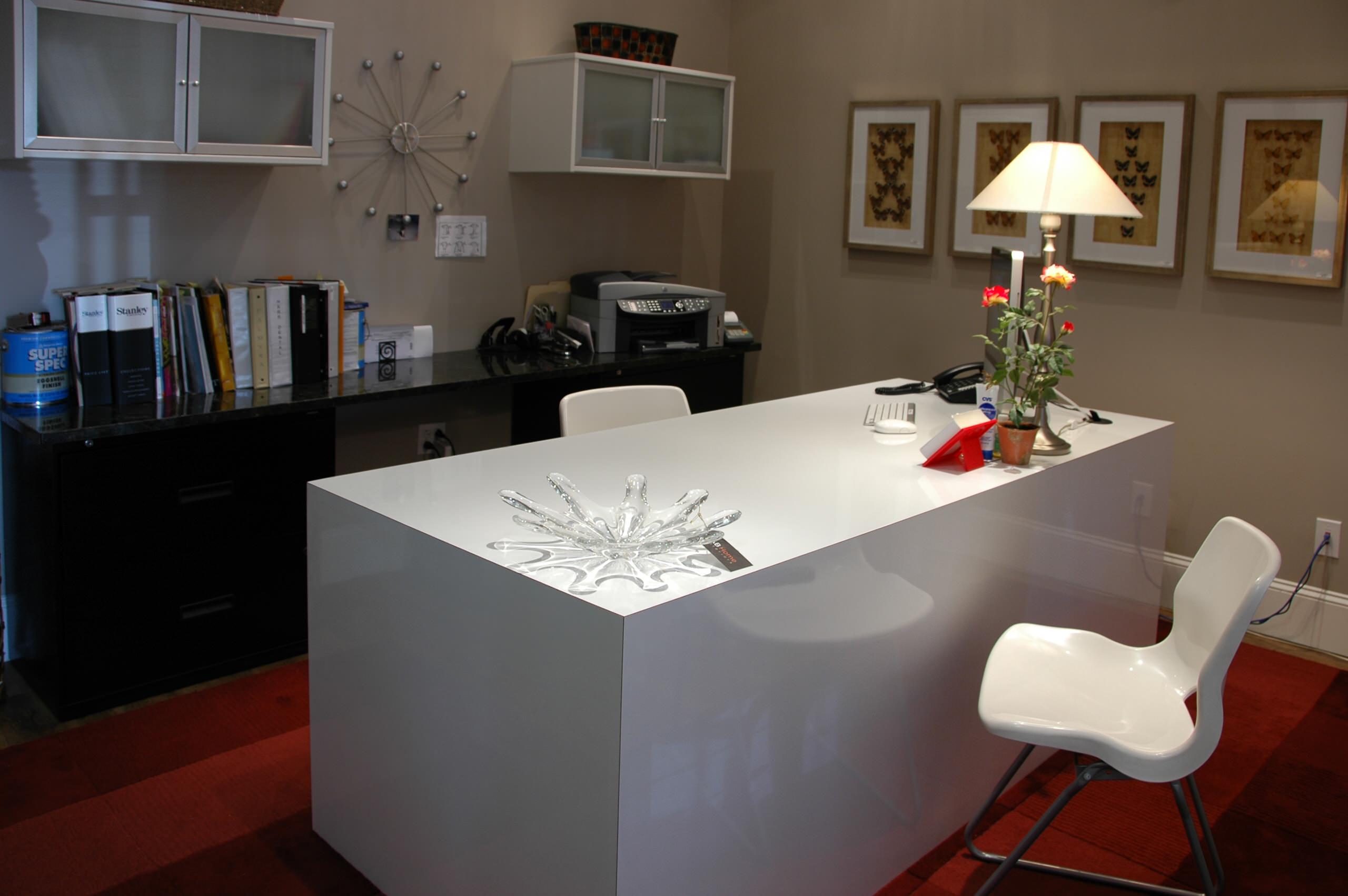 The grey office cubicle has definitely received a bad reputation. However, as shown here, a very warm grey can be a terrific choice for a workspace whether it’s a home office, studio or craft room. These warmer shades of grey are called greige because they are a cross between grey and beige. This colour is welcoming, cozy and far from being drab.