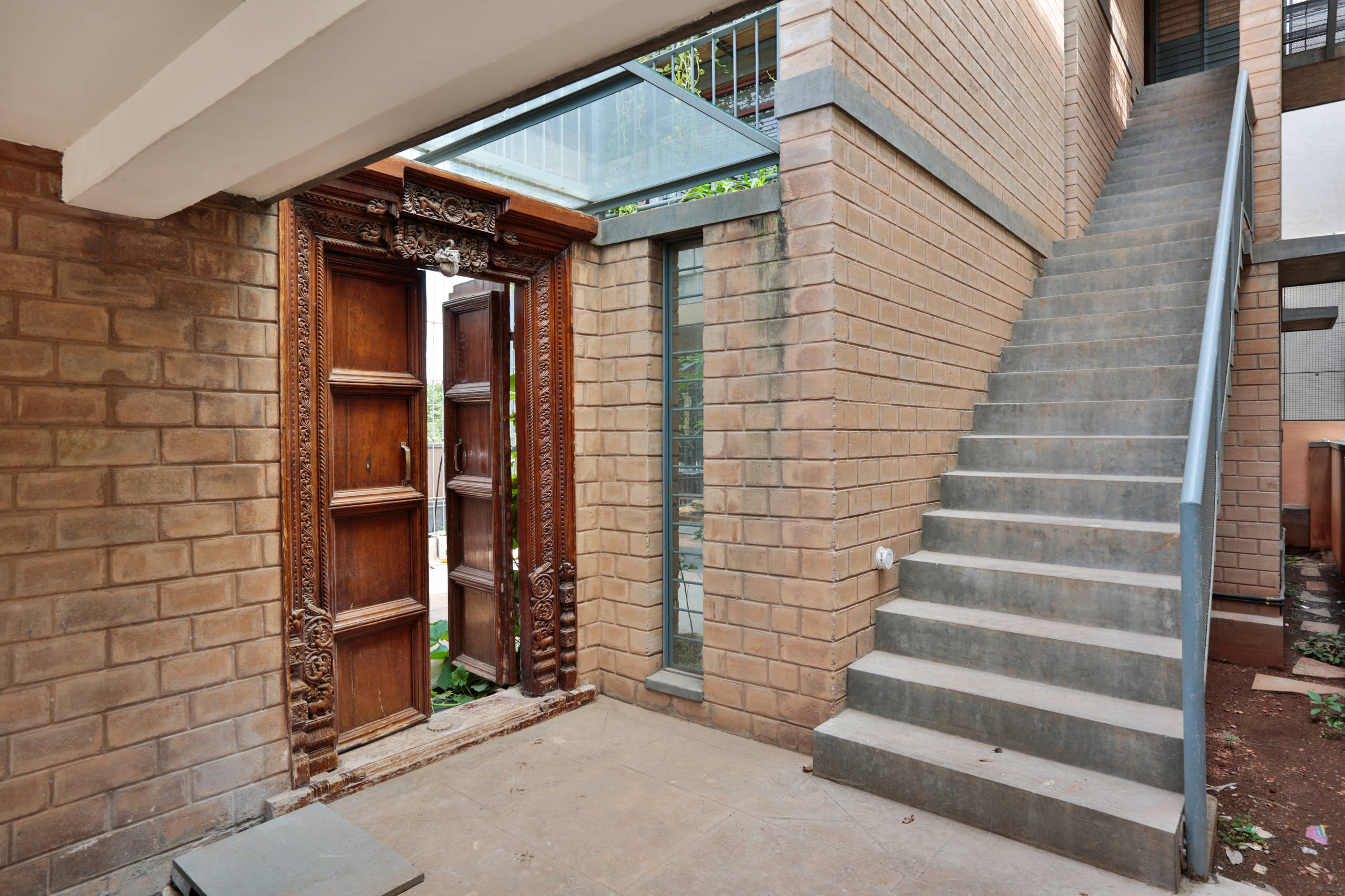 Take a look at this ornamental entrance door: it adds a good touch of artistry and looks glamorous in a rustic setting. And what a style statement it makes!