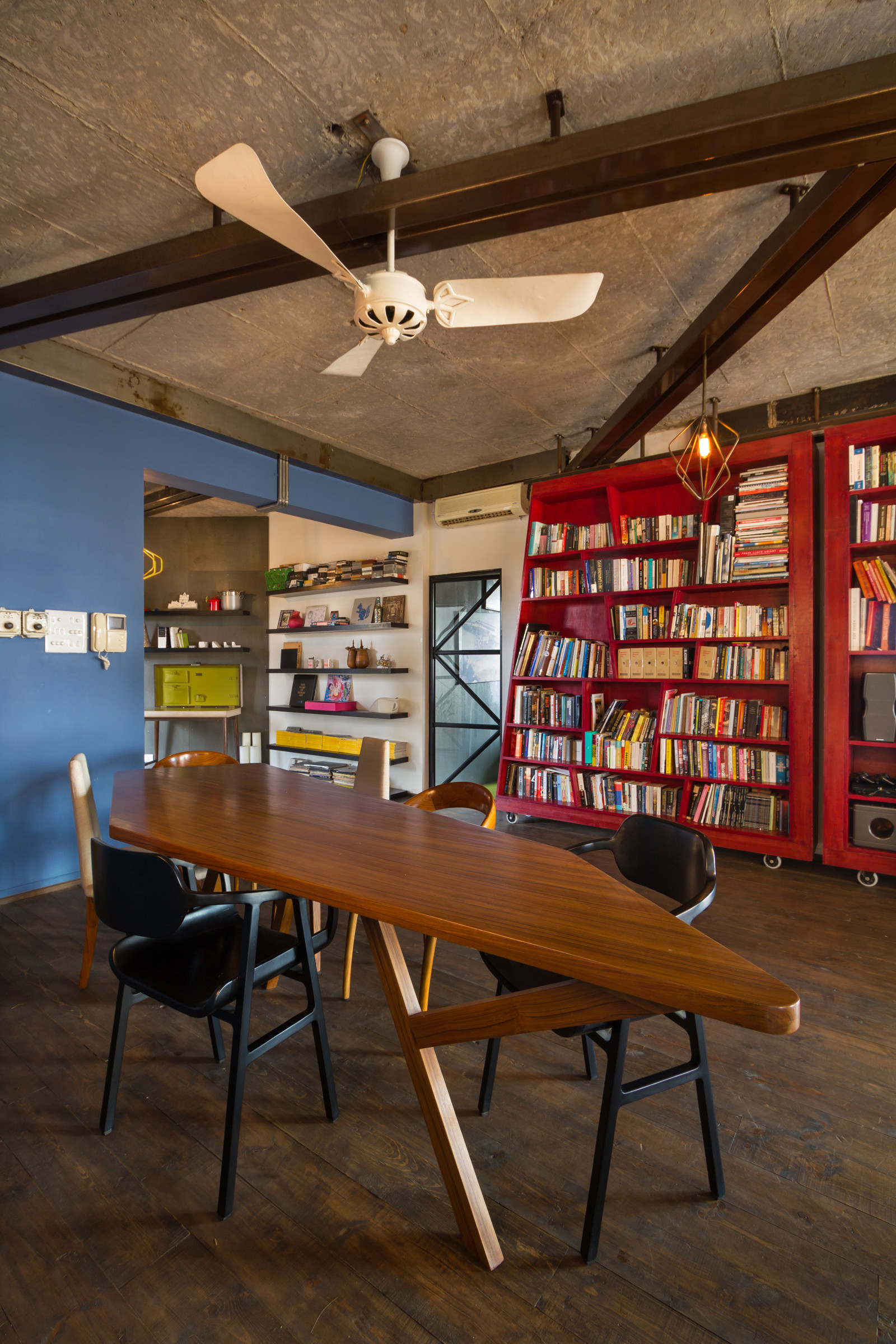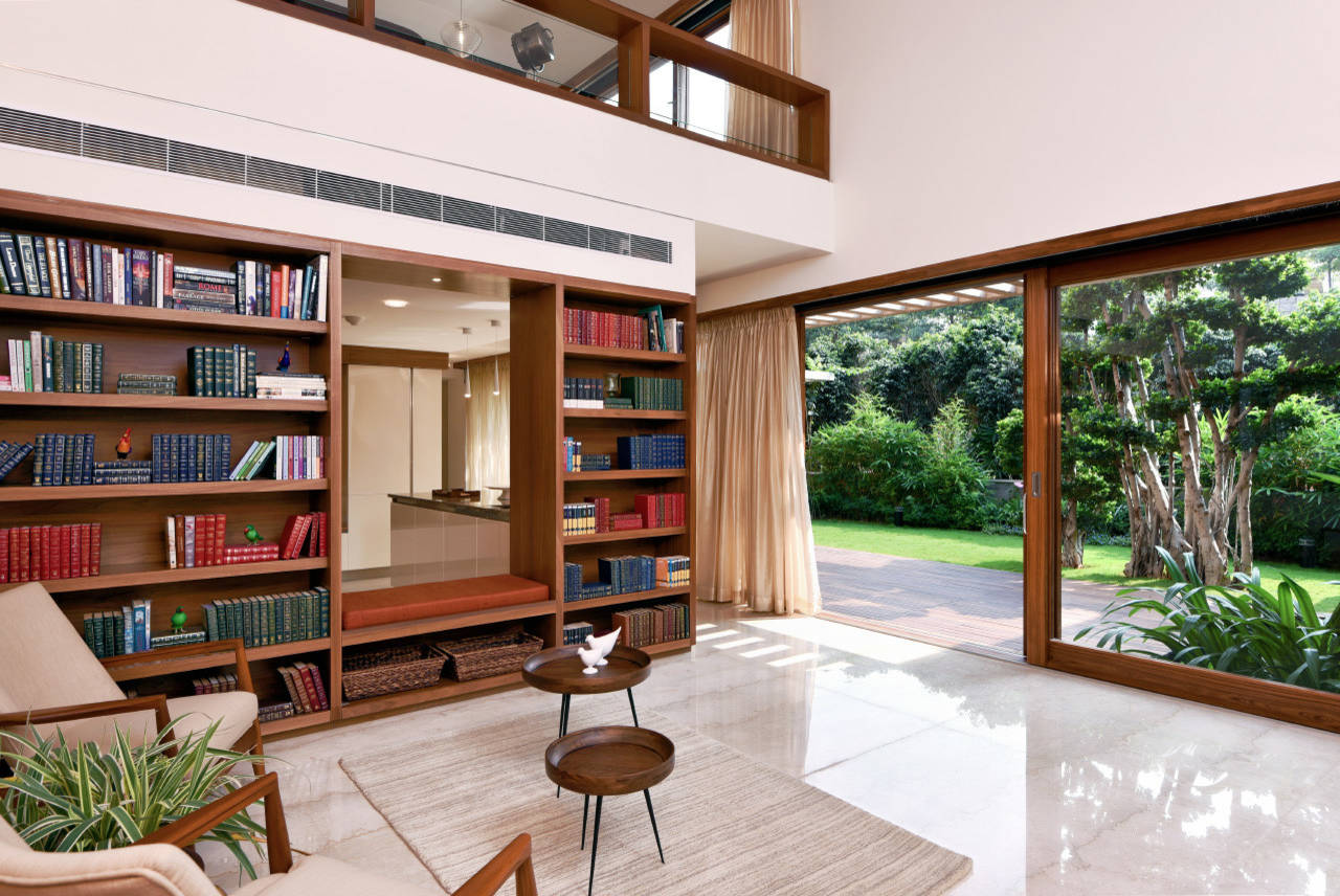 One of the easiest ways to create a home library is to use the longest wall in your living area. However, don’t just take advantage of the length of the wall, use its height as well. Floor-to-ceiling shelves add oodles of storage as well a place for your books. This custom-made, built-in bookcase by Mumbai-based design studio LAB (Language Architecture Body), also incorporates an entertainment unit with a section where a flat-screen can be wall-mounted. The shelves have been created to look like an extension of the ceiling beams, giving continuity to the design.