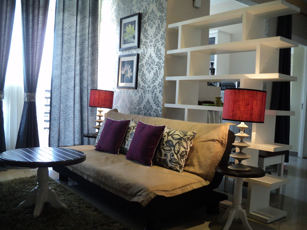 A bookshelf is a great way to divide large spaces. You can also create the illusion of a foyer by sectioning the living area from the entryway with an open bookcase that houses your library. Seen in this Delhi home designed by Avante iinc, the open bookcase runs as an extension of the wall, with living room furniture placed in front of it.