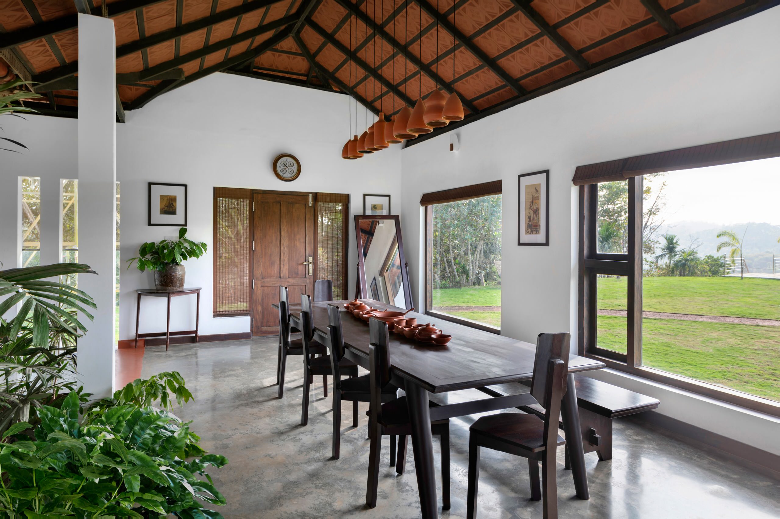 Wide windows bring the outdoors inside and give the best views of the lush green landscape from the dining area.