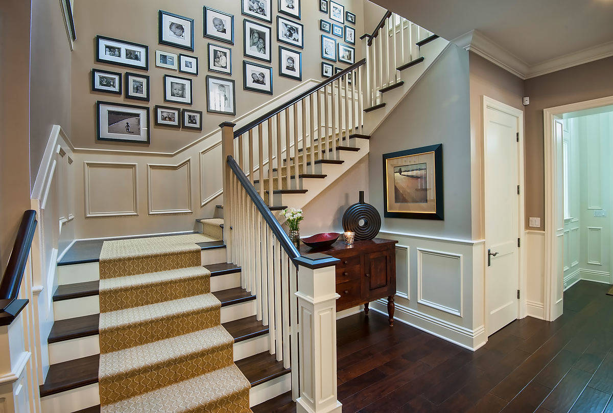 There are, for example, tread-width-to-riser height relationships that make stairs more comfortable for the average person to traverse. Building codes set a minimum for staircase width, but wider dimensions are often necessary. Other important considerations are head clearance, railing dimensions and landings.