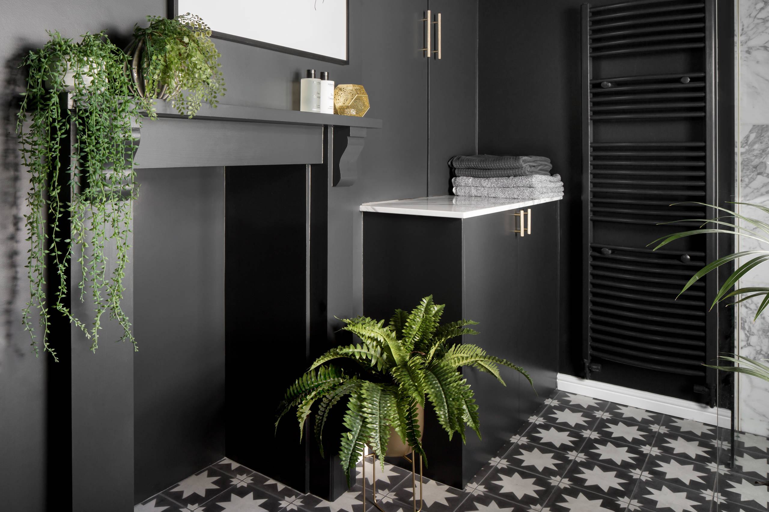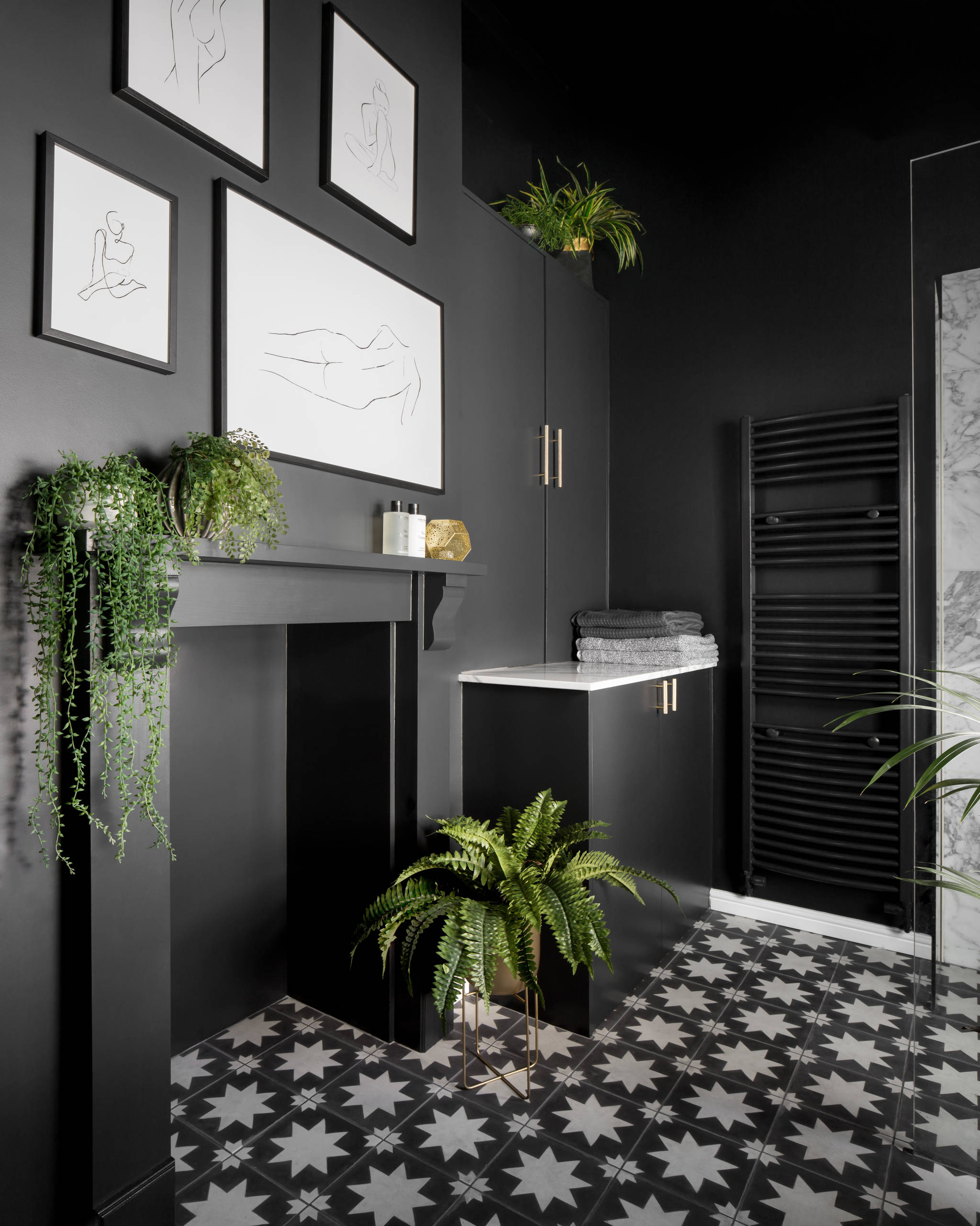 The chimney breast previously housed a tropical fish tank. “That had to go,” Jessica laughs. “I added the fireplace as a nod to the fact that this is a Victorian house, despite the modern bathroom fittings.”