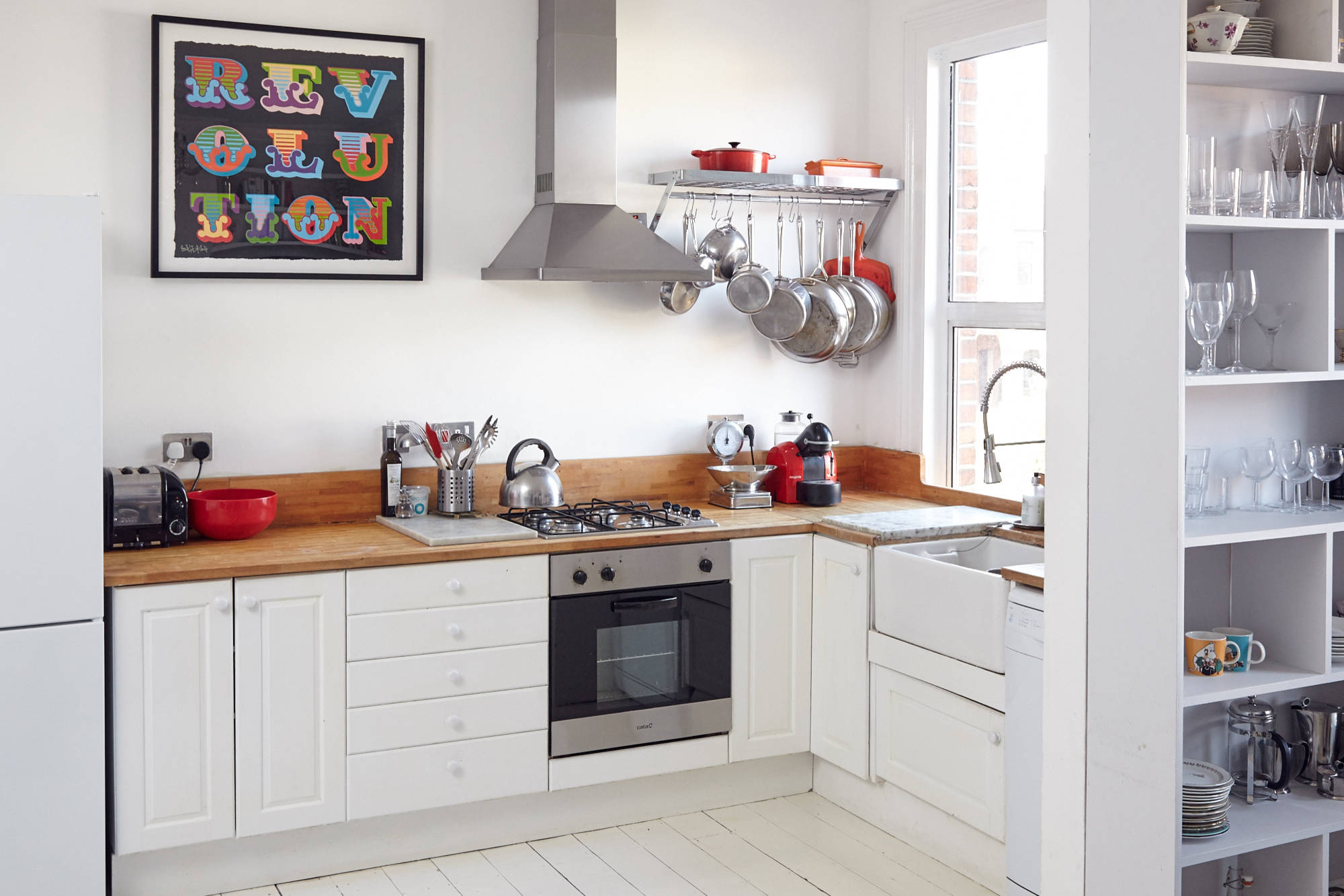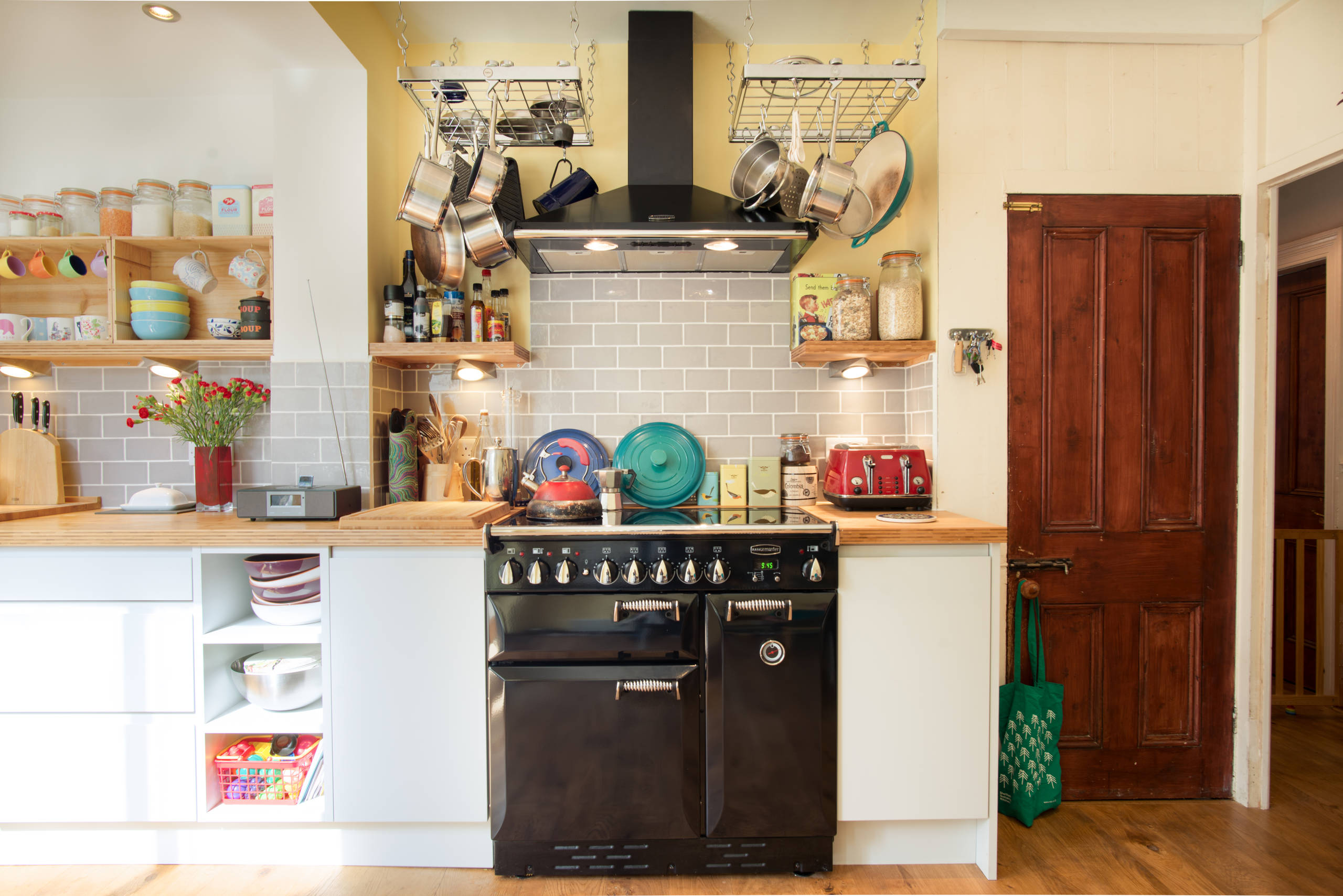 These cupboards might look standard from the outside, but inside they’ve been fitted with pull-out wire racks. These offer a functional but still good-looking alternative to wooden shelving, and are perfect if you want to know exactly where you put your peanut butter.