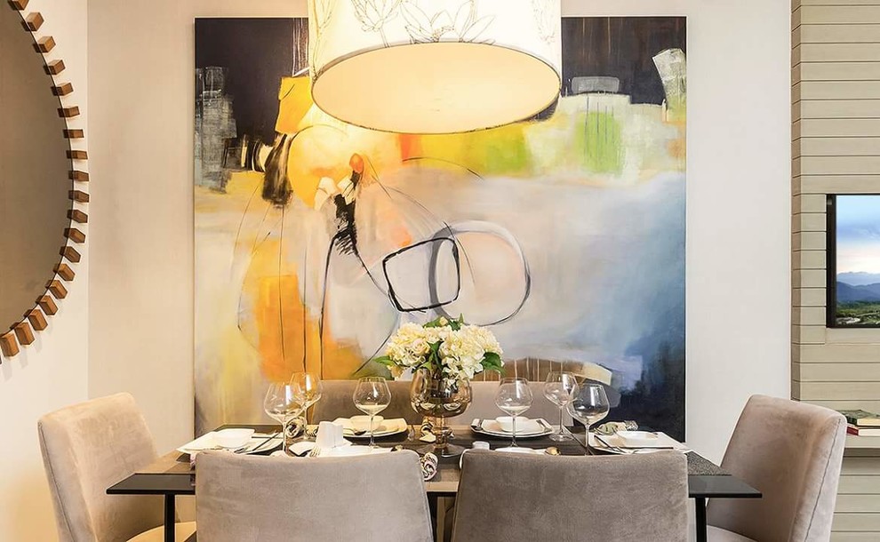 As space was at a premium, Tiwari decided to divide the living room into two spaces – the seating and the dining areas. This section, with a six-seater custom dining table in beige, gets a lift with a large, colourful artwork and a round mirror that helps create a space-boosting illusion. “Since it’s mostly just the couple dining at home, to create more space to move around, we pushed the table closer to the wall, leaving some chairs inaccessible, as these are hardly used. When guests arrive, the table can be pulled out,” Tiwari says.