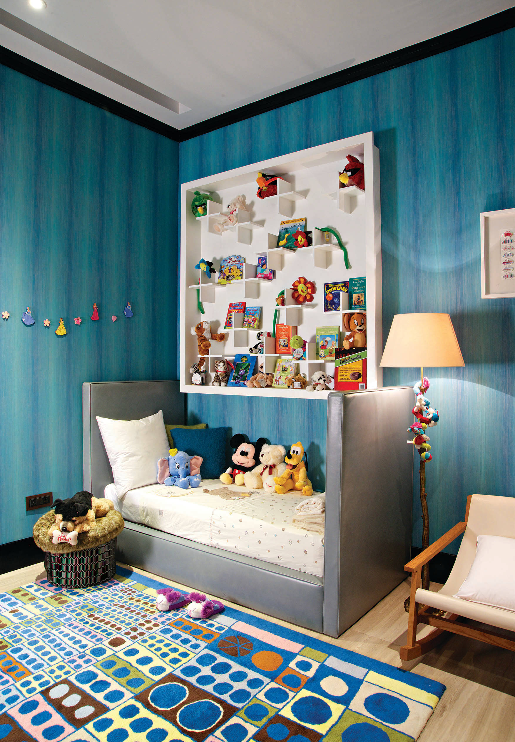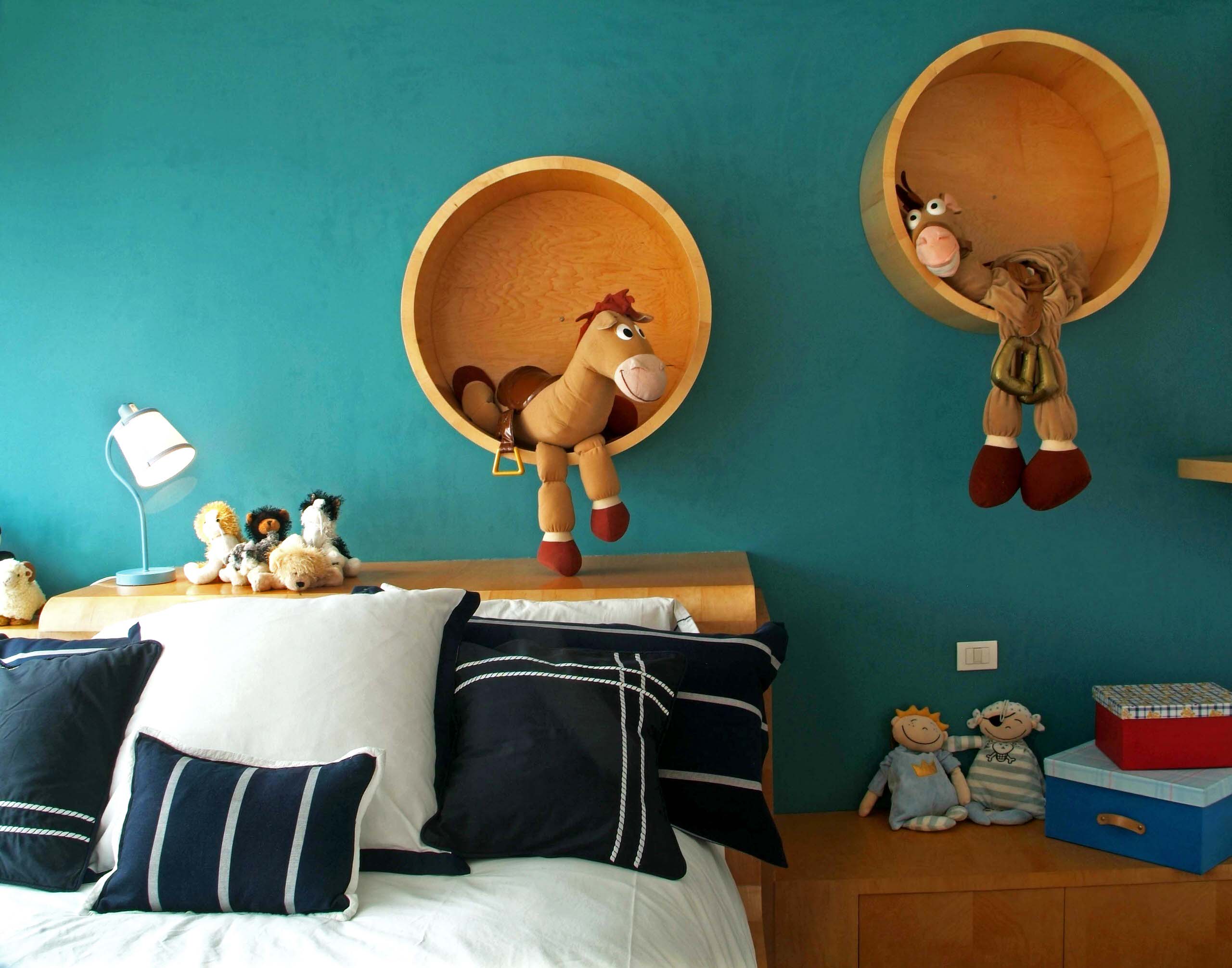 Introduce unconventional shelves and bring in perpetual cheer into your children's room