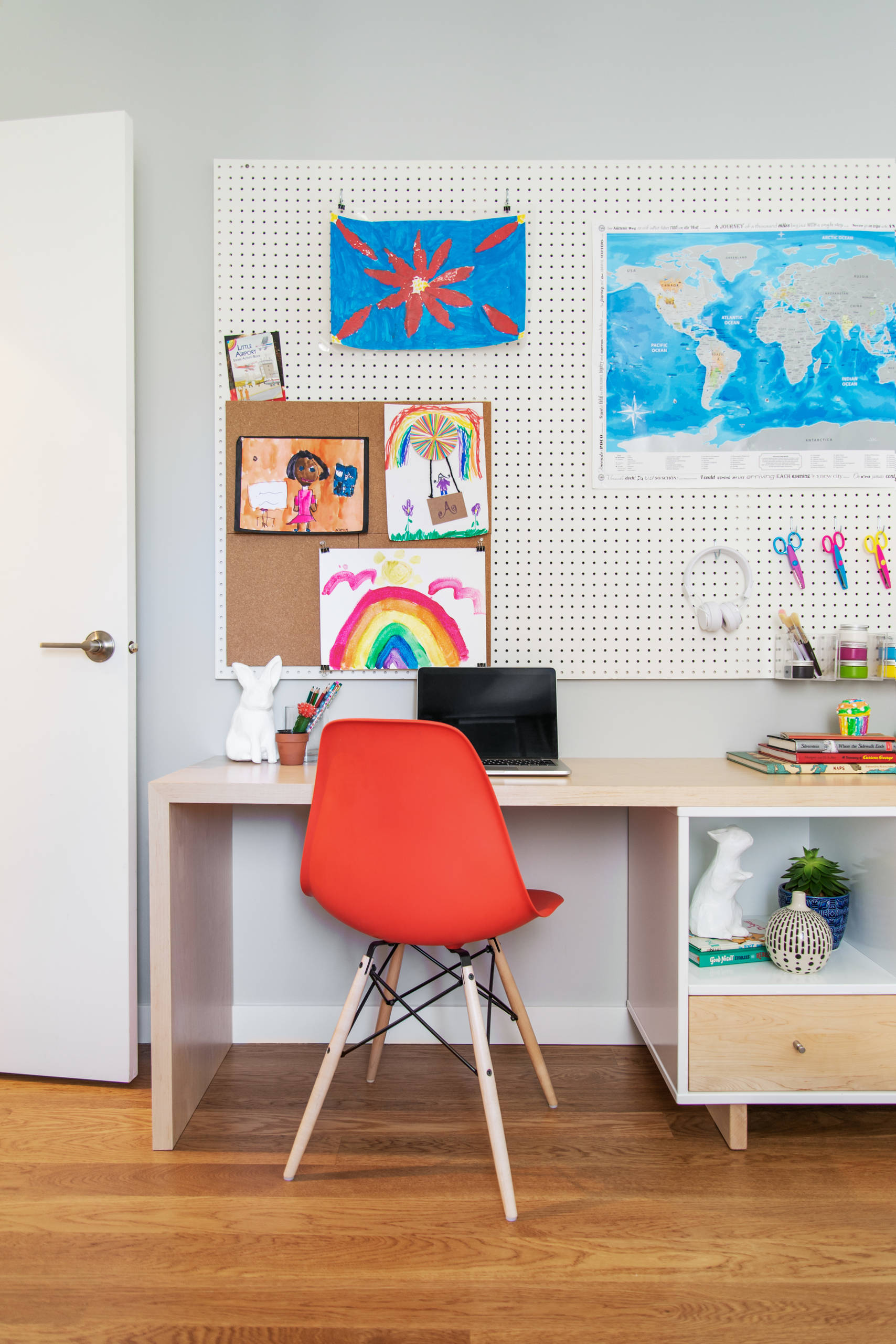 - If you anticipate a lot of paperwork — worksheets, artwork, drawing-related projects — look for a desk that features concealed storage or file storage, interior designer Erin Coren of Curated Nest Interiors says.