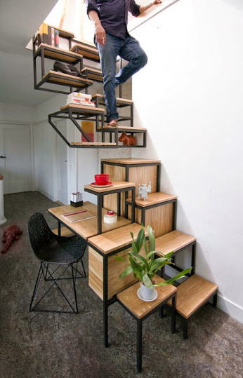 It’s always a bonus when a design pulls off double duty. But that usually comes at a price – making the structure bulky. Here however, 3dseekers showcases a pared-back staircase that is not only easy on the eyes but also manages to squeeze in some storage and a work station all built into one. The grain of the wood softens the starkness of the design as well as giving texture to the space.