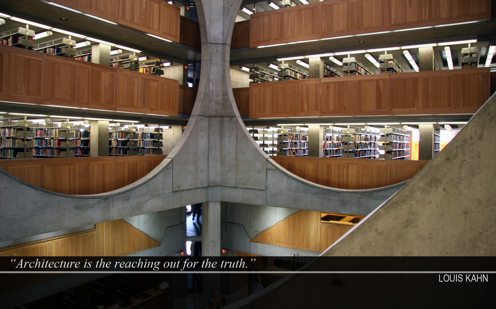 The Exeter Library and the Salk Institute express a poetic metaphor through the use of materials in their pure nature. The wooden interior of the library with the symphony of light for the reading areas creates a serene environment in the central atrium.