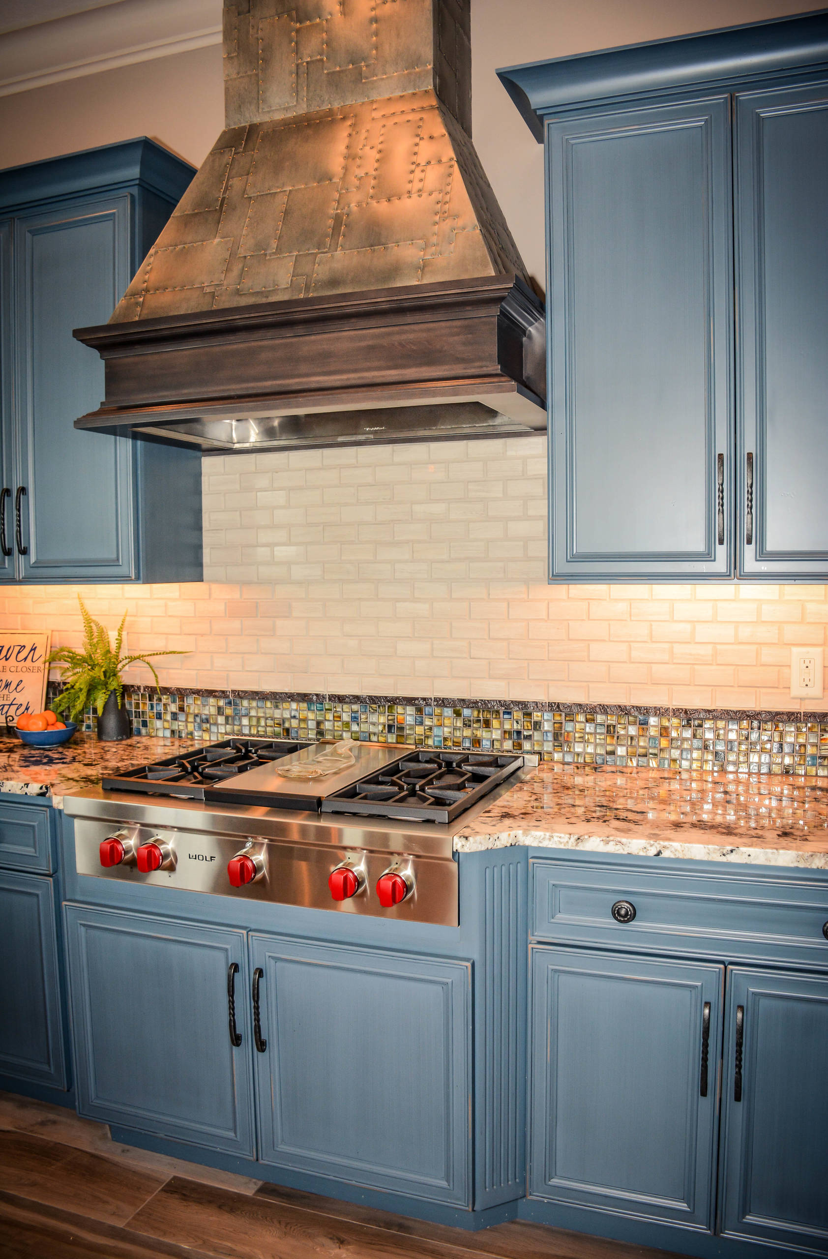 Tip: Just a sliver of mosaic can seal the deal too, as is evident in this image. The narrow band of mosaic backsplash is enough to give an uplifting quality to this teal and beige cook area.