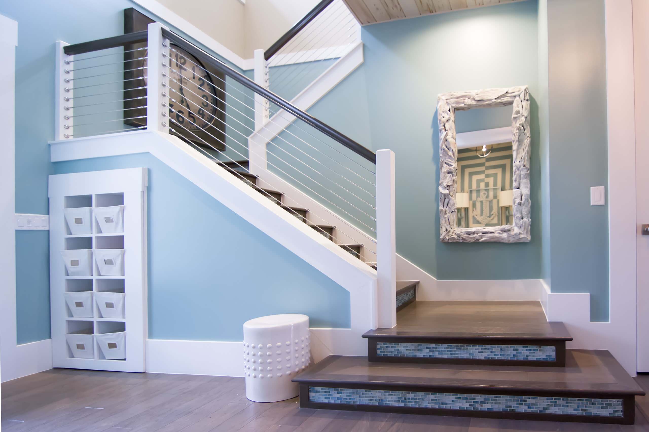 3. I like the innovation in this staircase design – it just makes the whole area pop. The dark wooden treads are highlighted with blue mosaics, making it look, almost, as though the steps are floating on water.