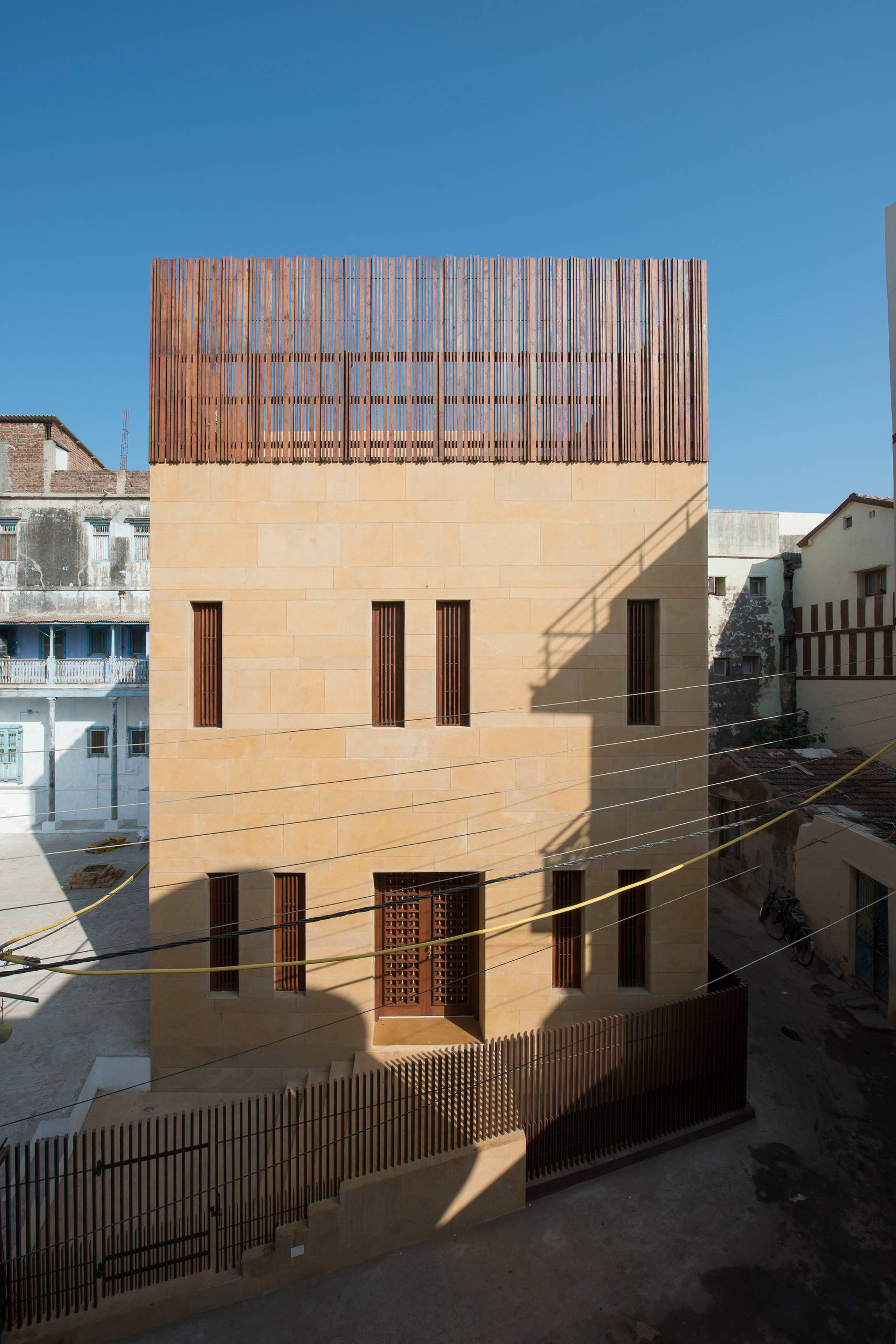 However, on the upper levels, the designers installed perforated Corten jalis to protect the rooms from the strong sun.