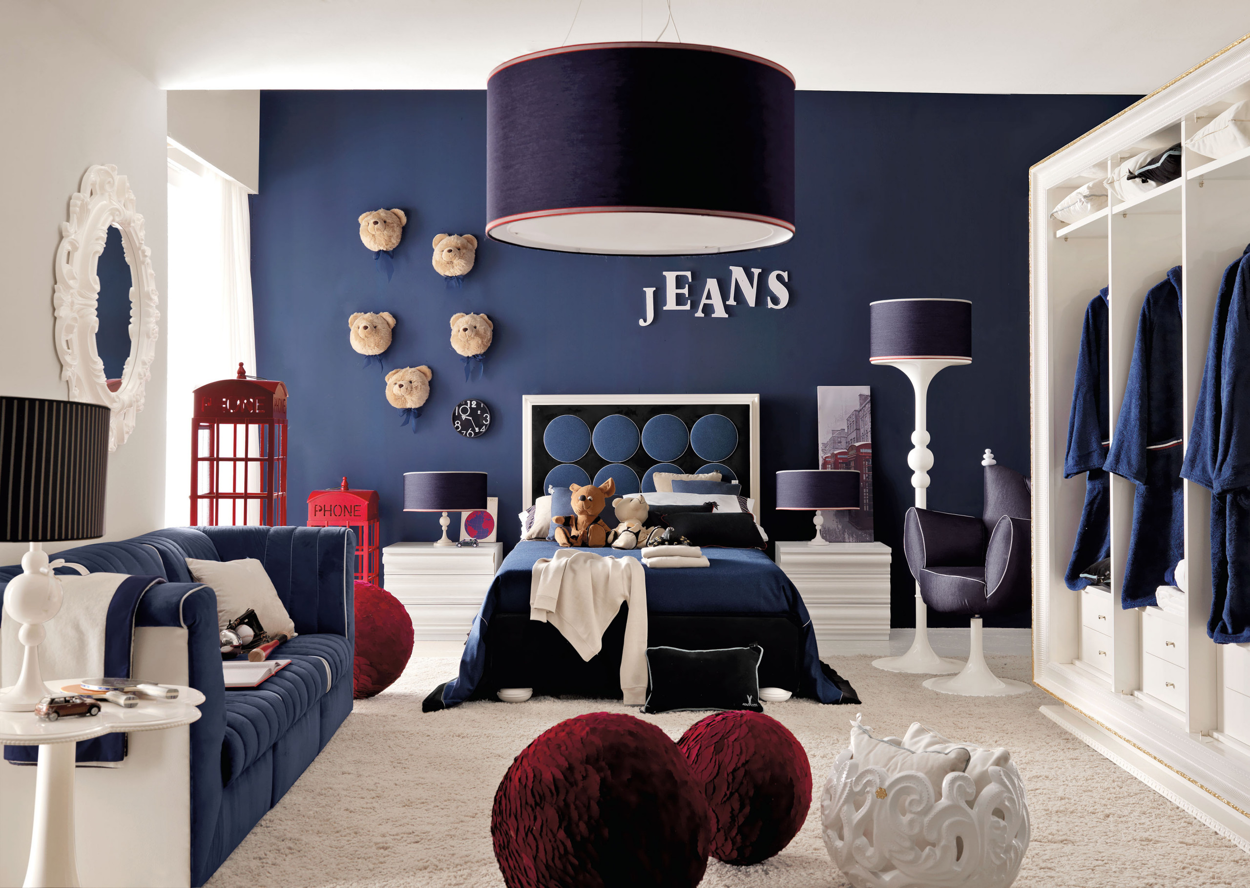 Teddy heads mounted on a wall make a witty, quirky decoration – a kiddie take on the traditional stuffed stag’s head, perhaps!