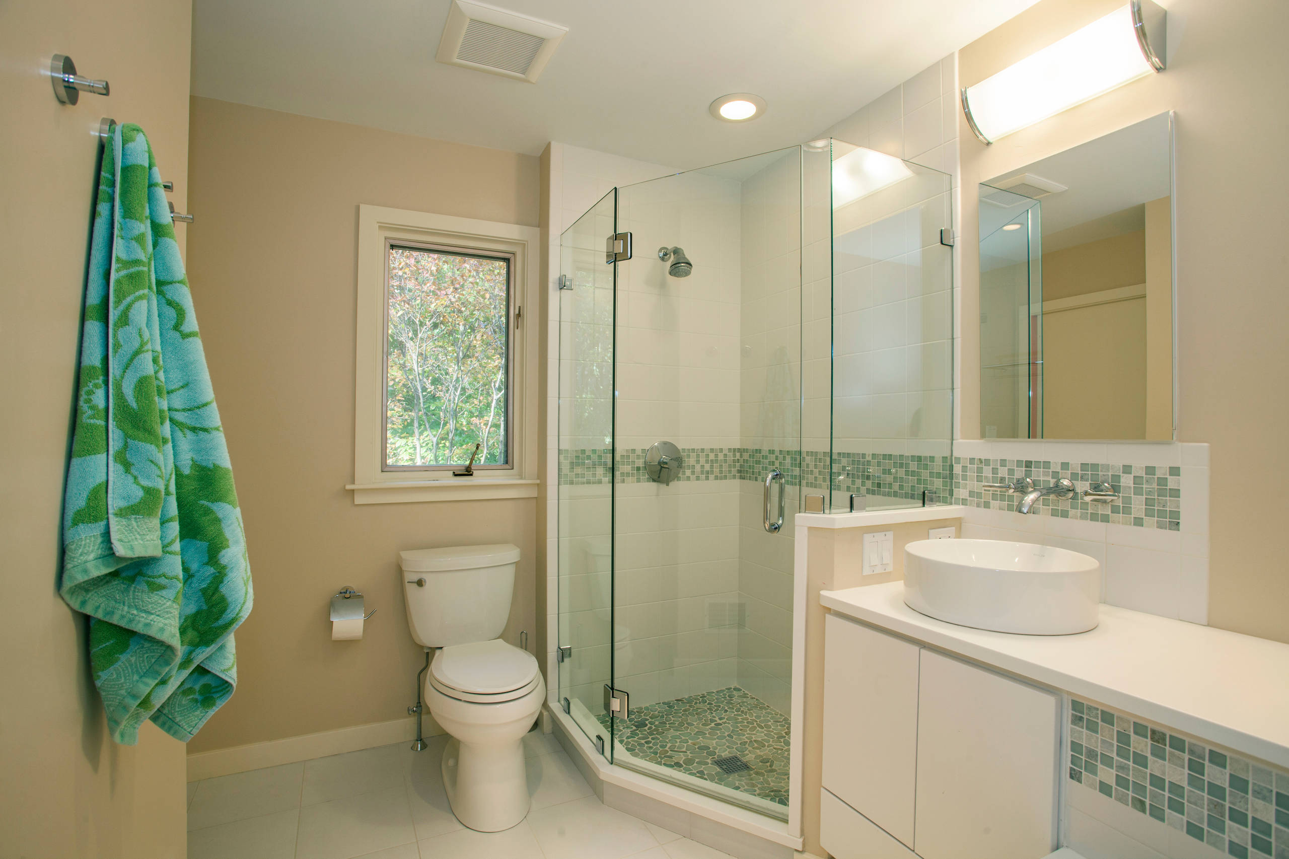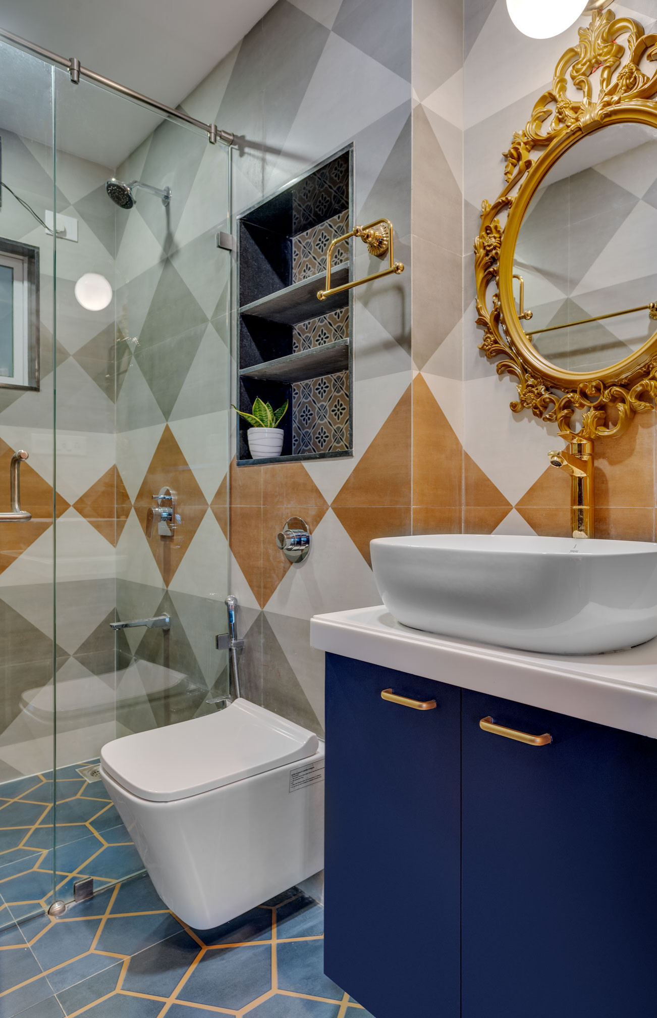 - Go for a glass partition between the shower area and the dry area of the bathroom as it allows light to pass and makes the bathroom feel more spacious.