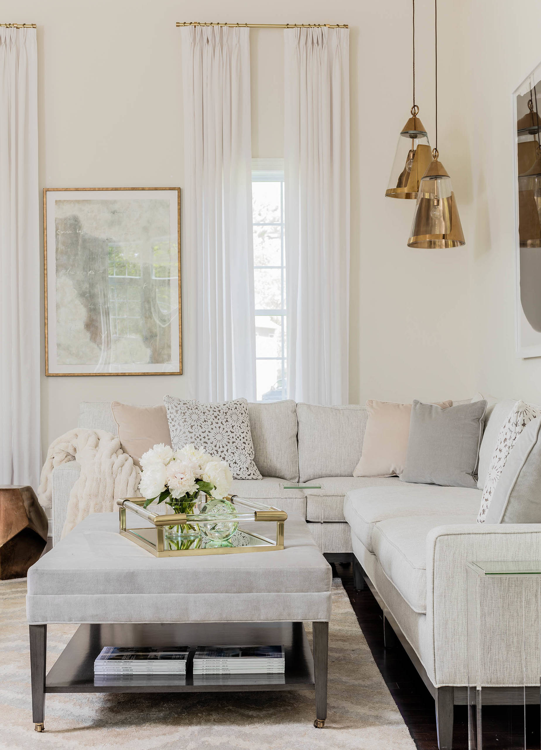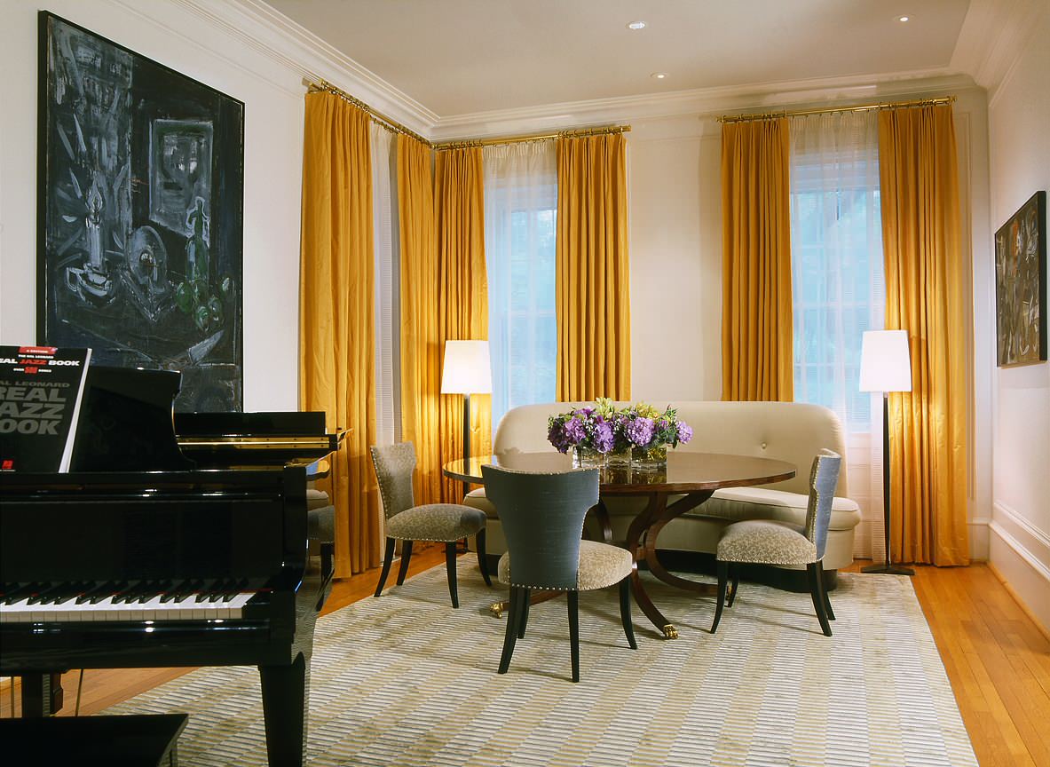 Looking at this image, the visual of mango sorbet and cream comes to mind. Look how the flowing orange curtains contrast with the cream walls and create an eye-catching combination.