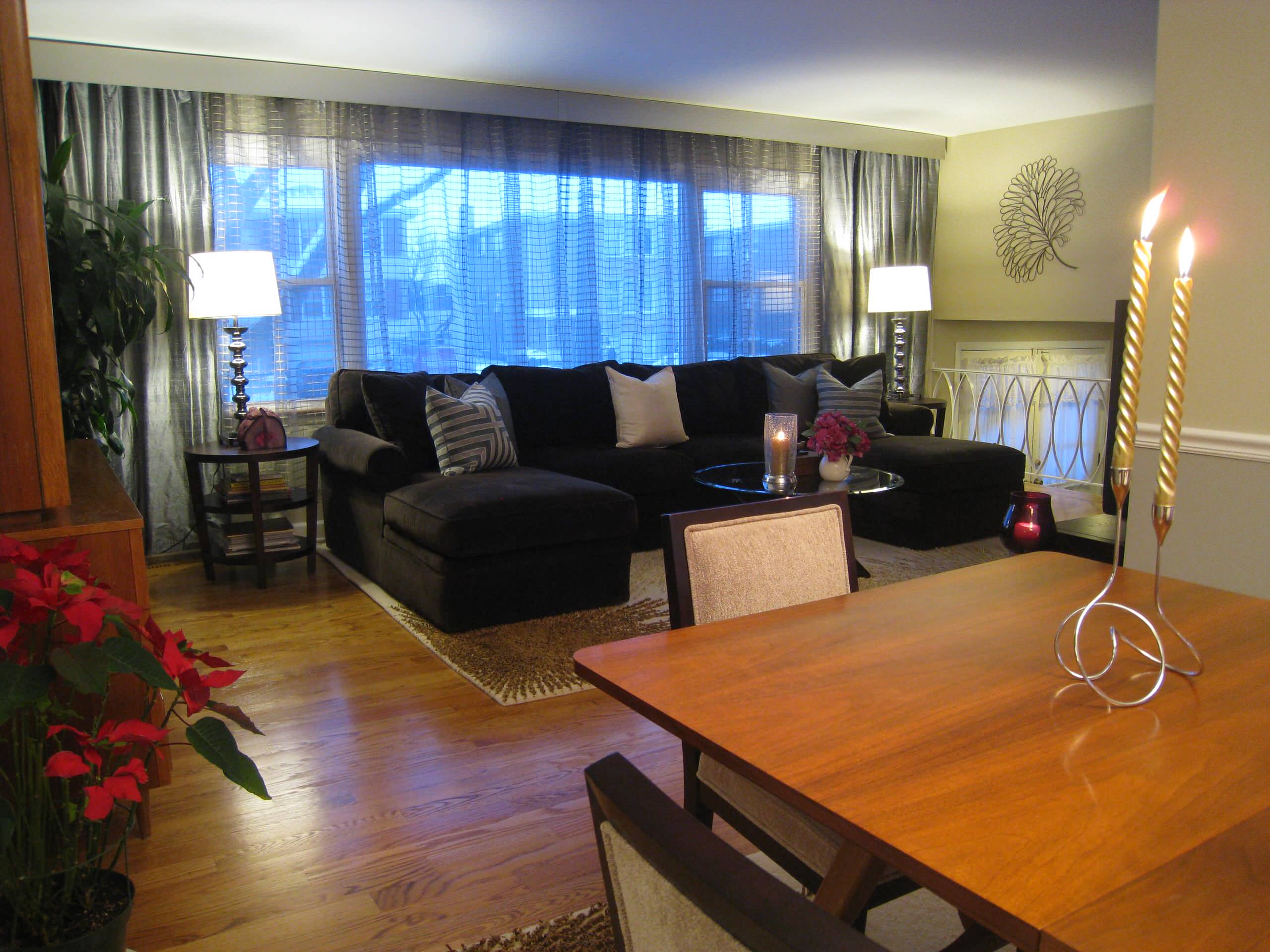 If your space allows for only a one-seat armless portion in the middle, seriously think twice about using a sectional at all. Consider who will be sitting on the armless portion, and how he or she will cope with the yawning chasm to the (in this case) right. Although a sectional is a great solution space-wise, the lack of an arm nearby can make people squirm. A potential solution is to use a love seat and a short chaise.
