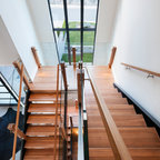 Located in Toronto’s Beaches district, 150_W addresses the challenges of maximizing southern exposure within an east-west oriented mid-lot while exploring opportunities for extended outdoor living spaces designed for the Canadian climate. The building’s plan and section is focused around a south-facing side-yard terrace creating an L-shaped cantilevered volume which helps shelter it from the winter winds while leaving it open to the warmth of the winter sun. This side terrace engages the site and home both spatially and environmentally, extending the interior living environment to a protected outdoor space for year-round use, while providing the framework for integrated passive design strategies.