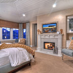 Like this, but not accents and not shape around actual fireplace, but wallboard covering majority with rich design