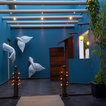 13. Spotlight-embedded beamsParallel beams fitted with golden spotlights can instantly add contemporary character to a pared-back doorway. The open-air transitional space in this Bengaluru home by Advani and Associates serves as an outdoor passage to the swimming pool. The deep-blue walls, embellished with fish tails, are bathed in soft light from spotlights on the overhead beams.
