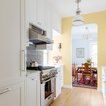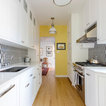 This shows a galley kitchen. The long floor tiles running the length make it feel bigger.