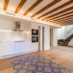 “La inclusión del negro fue una petición de los propietarios de la vivienda, pues es un color que les encanta”, cuenta Susanna. Se encuentra salpicando diversas zonas de la casa, aunque hay dos estancias en las que domina totalmente: una es la cocina. “Para rebajar la excesiva austeridad que producía, jugamos con la madera, como vemos en esta encimera de roble, y con el empleo de la luz artificial, integrada en las paredes y el techo”, explica Susanna.