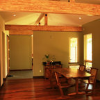 Painted island. Gives contrast to cabinetry and wood floor