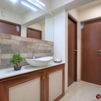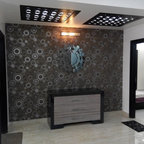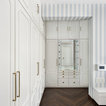 The entrance passage is a serene neutral space accentuated with glittering elements – a wall-to-wall mirror and antique pieces. “We had leftover marble from when we had laid out the living room, so we added a brass patti design on it and made the flooring. We then did a mirror panelling to make the passage look larger and curved the ceiling in an arch to add drama. All the doors of the home are finished in Duco to add a classic contemporary vibe,” says Sham. The console table was brought in from the client’s previous home.Here’s how to maximise tiny passageways