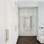 There’s no question that each element in this minimal, polished entry is spectacular. But the use of a mirror-wall, with its space-enhancing powers, takes it to an entirely different level.Find an interior designer to help you design your entryway