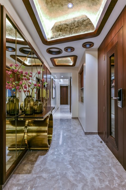 for entrance foyer - like the lights design on the top and the table + plants in the passage