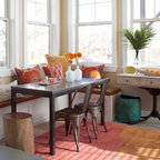 Like this cozy colorful bench for primarily for reading books since I read a lot and knit, but could possibly be a nice place for guests to sit, too.John and I like reading books best for our own use.