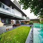 11. Photographed by: Deepak Aggarwal This sprawling farmhouse located in Delhi is like a pretty piece of art itself. Spreading green lawns, white elevations and the dramatic sky, all together frame picture-perfect views from various points in the house.The mirrored views of the buildings, trees and the sky captured by the reflection pool makes the setting exceptional. See more pictures of this house here