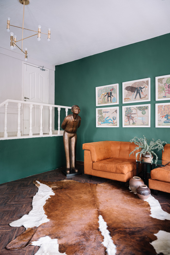 On the first floor landing is the family room that was created around the concept of comfort and fun. Deep tan sofas...