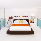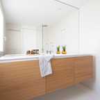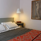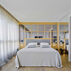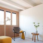 No ha sido tan solo pintura, sino texturas, mobiliario, y el constante movimiento de los que habitan este piso del Eixample barcelonés lo que se ha querido situar sobre un fondo blanco profundo y habitable que se abre hacia los raudales de luz que entran por las ventanas. Un vacío acogedor, funcionalmente resuelto para albergar y dar protagonismo a una pequeña pero interesante colección de piezas de mobiliario, arte y literatura curada por los jóvenes propietarios: Un diseñador industrial y una profesora de idiomas. Lo más valioso que han conseguido entre los dos, no son sin embargo, las reproducciones originales que cuelgan sobre las paredes, ni los clásicos contemporáneos del diseño industrial que salpican la monocromática amplitud del los espacios recién integrados, sino Joaquim, hijo de ambos, que con apenas 4 años ha conseguido colonizar todas las estancias de la casa con un montón de trastos seguramente menos costosos pero mucho más coloridos, resistentes y divertidos.