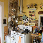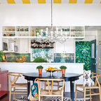 Breakfast would be my favourite meal if I had such a nice, vivid kitchen … the vibrant chairs, the dark wooden counter, antique gold pendants and the bright backsplash – what’s not to like? l also like the way teal and turquoise – variations of the same colour – are used on the walls. The almost-but-not-quite match show how much they have in common, and also how different they are. It’s a great effect. Take a look at some of the best eat-in kitchens