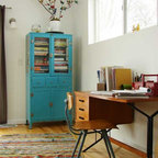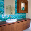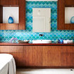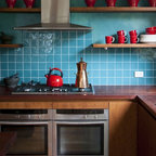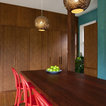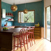 Wild card: Rich teal and redIf you are a colour lover, don’t hold back! The kitchen is actually a great place in which to experiment with colour, because even a small accent can make a big impact. The stained bamboo cabinets shown here have an almost tropical feel alongside the rich teal walls and tiles. Red is a vibrant mate for teal – try red stools at your kitchen island or red pottery on open shelving. Egyptian pendant lights add an exotic touch.Know all about the material bamboo