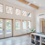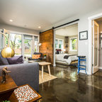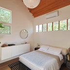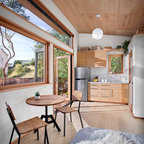 Located in Solano Canyon next to downtown Los Angeles, the two bedroom, one bath house (ADU) frames the natural surroundings and creates a cabin like space that is contemporary but also warm and intimate. The ceiling, made of clear douglas fir, emphasizes the linearity of the house and helps make the house feel bigger as well as cozy.