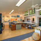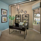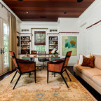 The ceiling and ample space in the center. The furniture colour and deco accessories.