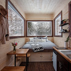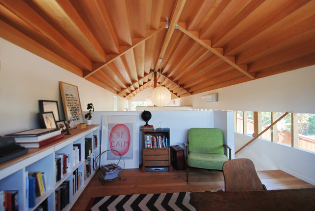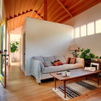 Located in Solano Canyon next to downtown Los Angeles, the two bedroom, one bath house (ADU) frames the natural surroundings and creates a cabin like space that is contemporary but also warm and intimate. The ceiling, made of clear douglas fir, emphasizes the linearity of the house and helps make the house feel bigger as well as cozy.