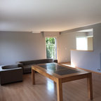 parquet associé à meuble TV contemporain suspendu