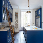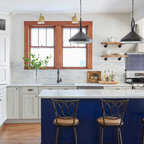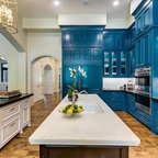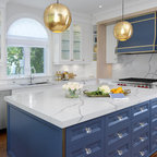 Like that blue and the thick marbled counter top on the island