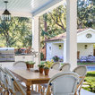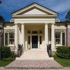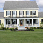 Front exterior of a Colonial Revival custom (ground-up) residence with traditional Southern charm. Each room is lined with windows to maximize natural illumination throughout the home, and a long front porch provides ample space to enjoy the sun.
