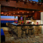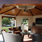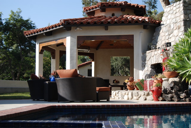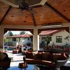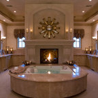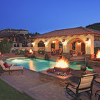 View from the spa includes the river rock fireplace cabana and cigar/scotch house in the background. Kurt Bednar