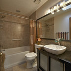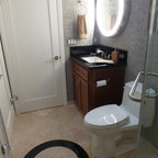 Love this shower/tub combo. The toilet area/entrance is also set up nicely