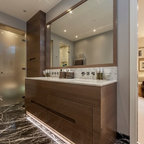Wood shelf looks as if tv is resting on it. For the chimney breast