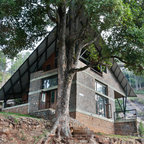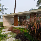3. ConcreteConcrete, besides being a primary structural building material, is now a popular accenting exterior material in many Indian homes. This durable and versatile material offers a Brutalist yet handsome look, one that works well with other materials such as wood, paint and glass.Concrete exteriors can be achieved in multiple ways. If exposing the existing concrete walls is not a feasible option for you, you can brush your plastered walls with waterproof cement paint. Composite panels – for example, fibre cement boards – can be clad over any treated or non-treated exterior surface, too. Similar to stucco and lime plaster, cement plaster can be applied to walls to tailor an exposed concrete look, as well. Scroll through many other industrial home elevation designs