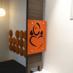6. The Orange Lane injects a burst of orange in this foyer to make the crisp achromatic whites more interesting with minimal effort. Bold and eye-catching.Here are more pictures of this house