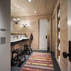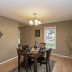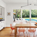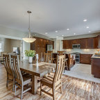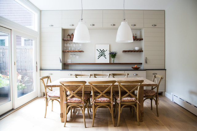 put more cabinets in dining area so less can be in kitchen? allows for open shelving in kitchen? and/or food storage in kitchen?