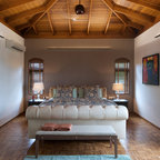 Seen in this Bangalore house, neutral colours are used in combination with pretty floral designs on the floors to bring out the beauty of the material.