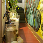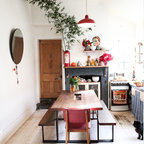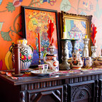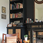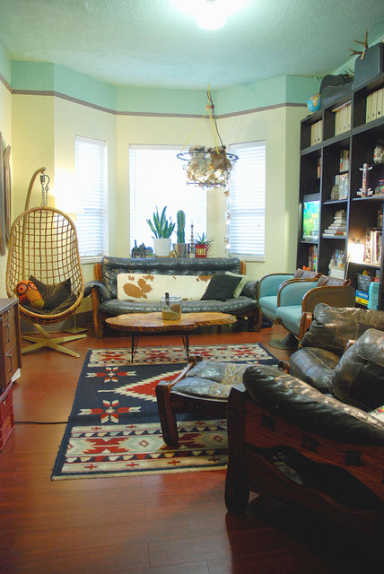 "Our decorating philosophy is that nothing is permanent," Tami says. "I'm a merchandiser by trade, and Josh is a filmmaker, so we are constantly inspired by things around us and wanting to create something new or switch things up." Whenever friends come to visit, they're not surprised to see that the living room has been rearranged or some things have been changed in the house. Carpet: Value Village; shelving: Besta system, Ikea